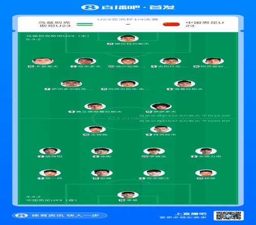 體育播報01月17日宣 北京時間19:30,U23亞洲杯1/4決賽,U23國足vs烏茲別克斯坦。賽前,雙方首發出爐。