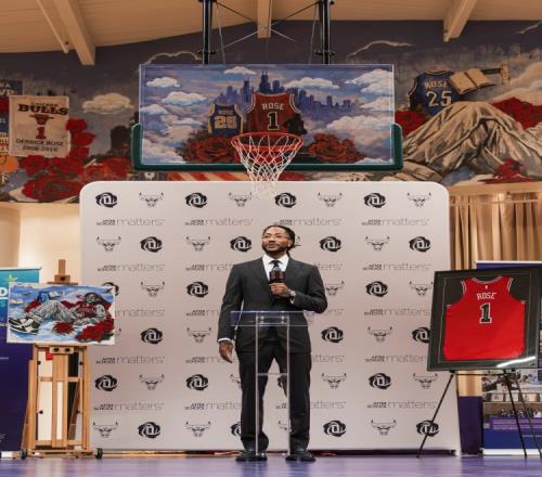 羅斯親臨!公牛在芝加哥當地青少年組織球場為羅斯新添巨幅壁畫!