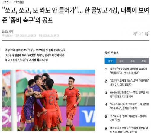 體育播報(bào)01月18日宣 中國(guó)隊(duì)晉級(jí)U23亞洲杯半決賽,而韓國(guó)隊(duì)則也闖入了另一個(gè)半?yún)^(qū)的四強(qiáng)。韓國(guó)媒體《財(cái)經(jīng)新聞》深度關(guān)注分析了中國(guó)隊(duì)本屆賽事的防守表現(xiàn)。文章內(nèi)容如下: