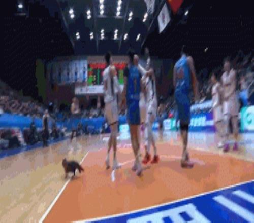 稀客啊!廣東對陣四川比賽期間場上突然跑出一只小貓