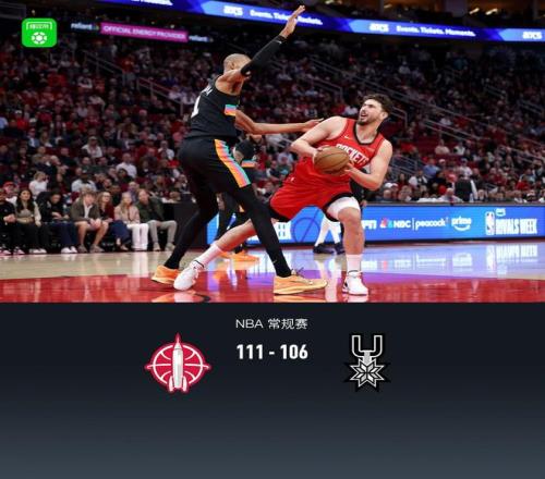第四節火箭里德-謝潑德拿下12分,馬刺凱爾登-約翰遜拿下4分,最終火箭111-106戰勝馬刺