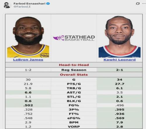 太陽記者Shane Young和快船記者Farbod Esnaashari為倫納德鳴不平,認為倫納德比詹姆斯本賽季更出色。小卡本賽季打了34場比賽,場均27.7分6.1籃板3.5助攻2.1搶斷;詹姆斯打了30場比賽,場均21.9分5.8籃板6.6助攻1.1搶斷。