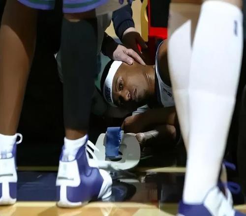 但似乎上天和他開了一個天大的玩笑,就在賽季末期,他在一場和森林狼隊的比賽中,利用速度完成2+1,但卻在空中失去平衡,重重摔在了地上,一度無法動彈身體。